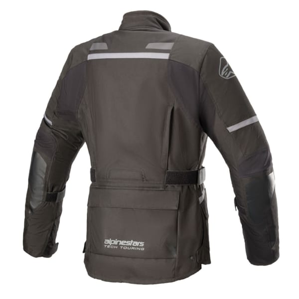 Dat alles mag – nee, moet – goed zitten, dat spreekt voor zich. Hoewel een touringjas geen racepak is, mag het best nauwsluitend aanvoelen. Alpinestars hanteert daarvoor een vierzijdig maatsysteem (voor de jas alleen) en laat niets aan het toeval over. Natuurlijk is elk lichaam anders, dus beschik je daarnaast nog over tal van individuele aanpassingsmogelijkheden. Eén centrerende riem op elke flank volstaat, dachten ze in Italië, en dat klopt dus lieten ze de tweede (die was er bij de V2 wel nog) vallen. Een velcroriem met gesp op de onderarm, een drukknop op de bovenarm en een trekkoord onderaan zijn wel gebleven, en ook de kraag (velcro) en de mouwuiteinden (velcro) zijn aanpasbaar. Het zorgt ervoor dat ‘niet goed zitten’ eigenlijk geen optie is.