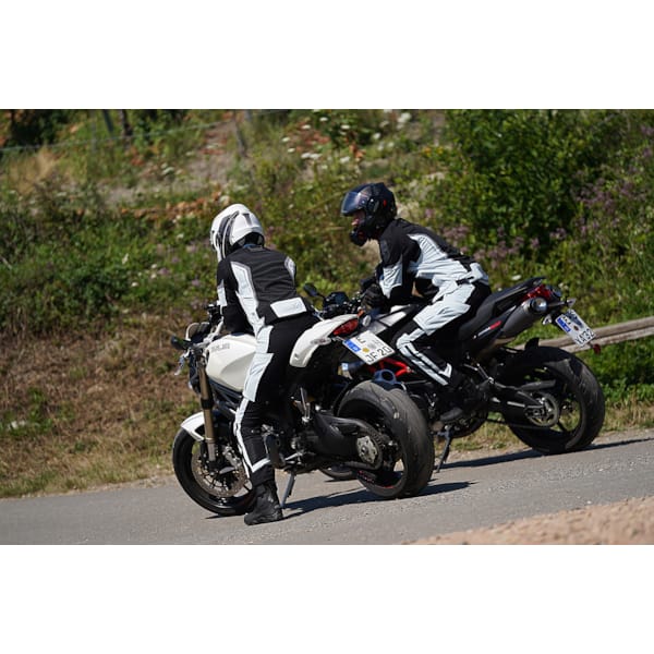 Een optionele rugprotector behoort altijd tot de mogelijkheden. De verbindingsrits van de Khao Air lijkt wel gemaakt voor een vlotte link met de Khao Air-motorbroek en elke hedendaagse motorjas is uitgerust met reflecterend materiaal.