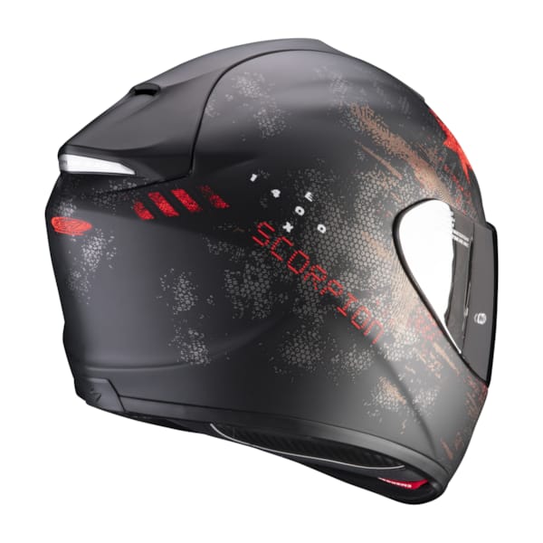 Of dat mag het in elk geval zijn. De EXO-1400 Air heeft een glasvezel-helmschaal meegekregen en drie verschillende helmschalen houden elke helmmaat strak binnen de lijntjes. Bij SCORPION vertaalt zich dat vooral in een smallere helmschaal met over de hele lengte aerodynamische accenten. De composietschaal (TCT) gebruikt verschillende vezels, met specifieke eigenschappen, voor een zo goed mogelijk resultaat.