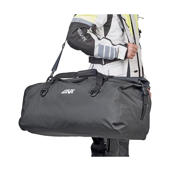 Niettegenstaande je dus met een cilinder van 80 liter onderweg bent, slaagt GIVI er overigens in het allemaal zeer praktisch en handig te houden. Goede handvaten, een dubbele snelbinder om alles op de motorfiets te bevestigen, een meegeleverde schouderriem … zowel onderweg als op je bestemming zit het goed. Hangt het goed. Draagt het goed.