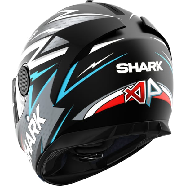 De aerodynamica is één van de eigenschappen waar Shark duidelijk hard gewerkt heeft. Zelfs de afdekplaatjes van de vizierbevestiging zijn voorzien van een golfbalstructuur die zowel de aerodynamica als het geluid binnenin de helm ten goede komt. ‘Shark skin’ heet het hier, en het is effectief. Achteraan zijn twee spoilers aangebracht die niet alleen een betere stabiliteit van de helm creëren, maar meteen ook dubbelen als geïntegreerde ventilatieopening. Zo kan de luchtstroom van de topventilatie de helm weer verlaten via beide spoilers. De top- en kinventilatie zijn gemakkelijk te bedienen met handschoenen aan.