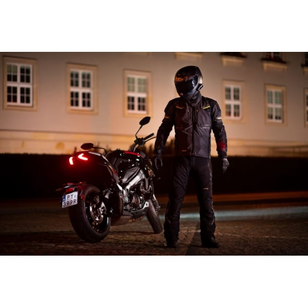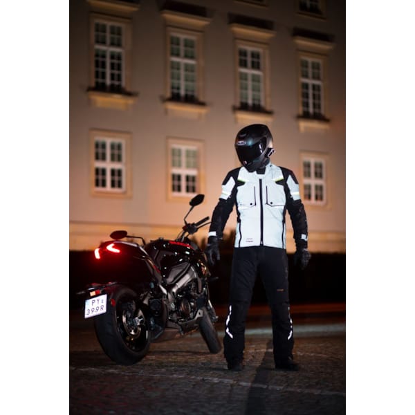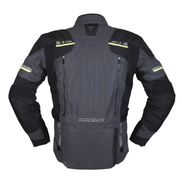 Modeka levert met de Taran Flash-motorjas een opvallende, net niet lichtgevende, waterdichte textielmotorjas af waar vooral veelrijders en pendelaars plezier aan zullen beleven. In uiteenlopende omstandigheden en met dank aan de aanpassingsopties onderweg, is deze 2-in-1 een budgetvriendelijke klasbak.
