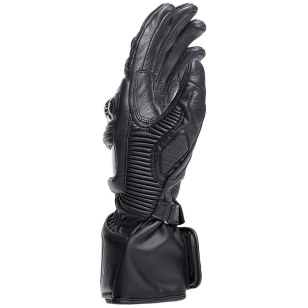 Schaapsleder is het hoofdbestanddeel van de Druid 4. Logisch, want leder hoort bij het circuit als wol bij dat schaap. Polyurethaan en carbon, dat zijn de opvallendste harde componenten die voor extra impactbescherming zorgen. De knokkelbeschermer en de handrug in carbon coveren heel wat oppervlakte terwijl de vingers en de handpalm op kleinere maar net zo efficiënte protectie in polyurethaan mogen rekenen. De pink krijgt nog wat extra aandacht in de vorm van thermoplastic-onderdelen. De handpalm bestaat uit – hoe zou het anders kunnen? – geitenleder en dan zijn we eigenlijk al zo goed als rond. Nou ja, wat we hier in vier zinnen vertellen vergt jarenlange knowhow en expertise. Maar, puur dus, deze Druid 4. Geen overtolligheden, geen ballast, alle focus op maximaal stuurgevoel, goede grip en uitstekende bescherming.
