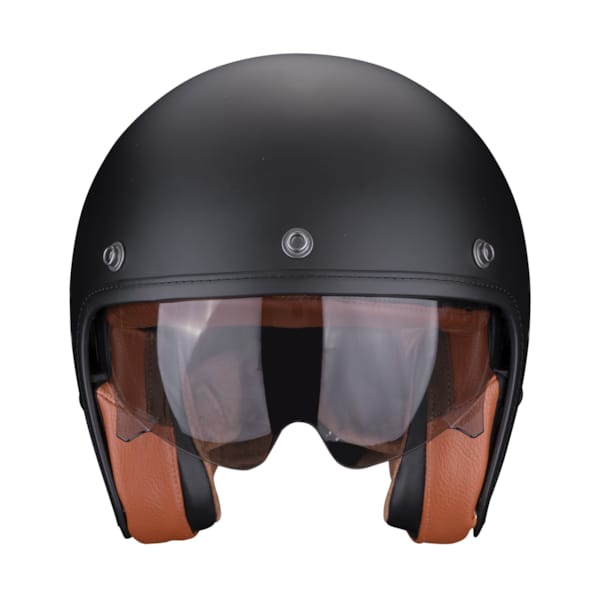 Naar een transparant vizier hoef je niet te zoeken. Met de term ‘Speedview’ kijkt SCORPION in de richting van een geïntegreerd zonnevizier. Je bedient het gewoon rechtstreeks, op de meest eenvoudige manier en het is een welgekomen aanvulling voor wie niet per se met een helmbril wenst te rijden. Die laatste kan natuurlijk ook, getuige de lederen riem-met-drukknop die je achteraan de Belfast EVO aantreft.