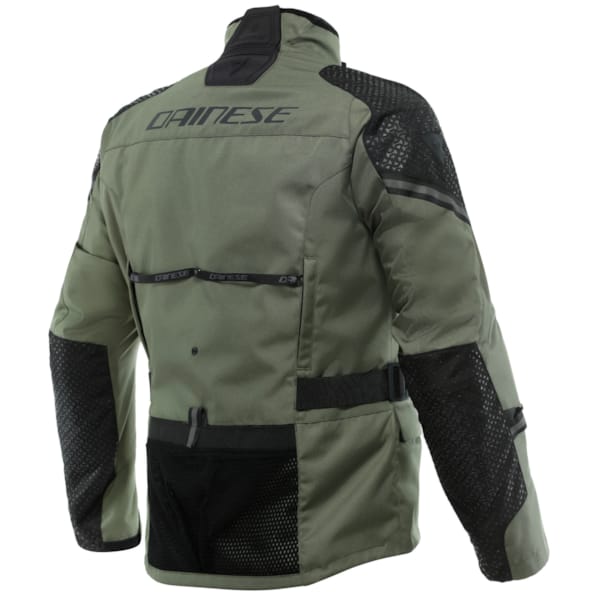 De buitenlaag van deze 3-in-1 bestaat in hoofdzaak uit 600D Polyester en dan weet de ervaren motorrijder dat we het over een uitstekende slijt- en scheurvaste basis hebben om zowel noord- als zuidwaarts verder te kijken en te trekken. De buitenzijde van de Ladakh 3L D-Dry® is dan ook vooral ‘de kapstok’ waaraan de onderliggende functionele lagen letterlijk opgehangen worden. In logische volgorde zijn dat het D-Dry®-membraan dat waterdichte eigenschappen aan ademende kwaliteiten koppelt, en een thermovoering. Allemaal uitritsbaar, dat mocht al duidelijk zijn, en in het geval van de thermovoering zelfs los van de rest te dragen. De tijd dat membranen en extra lagen aan de huid kleefden en ongemakkelijk aanvoelden, lijkt met deze generatie DAINESE-motorjassen trouwens definitief ten einde.