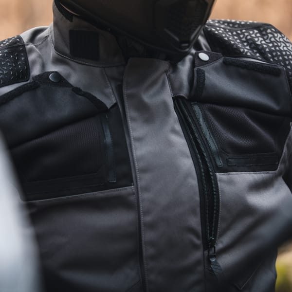 Het enige wat we nog ontbreken om van de Ladakh 3L D-Dry® een echte allrounder te maken, is goede ventilatie. Die komt in verschillende formaten en uitvoeringen. Op de rug fungeren ze als uitlaat voor de rijwind die via de openingen op de mouwen en borst naar binnen stroomt. Stroomt, jazeker, toch als je dat wenst. Je kan beide ventilatieopeningen op de borst makkelijk open zetten en door middel van een drukknop ook open houden. Een extra ventilatieopening bevindt zich in de hals. We zijn er nog niet helemaal uit of we die vaak gaan gebruiken maar de optie hebben, is nooit slecht. De verbinding tussen de twee ventilatie-uitlaten op de rugzijde is een goede poging om alles eenhandig bedienbaar te houden.