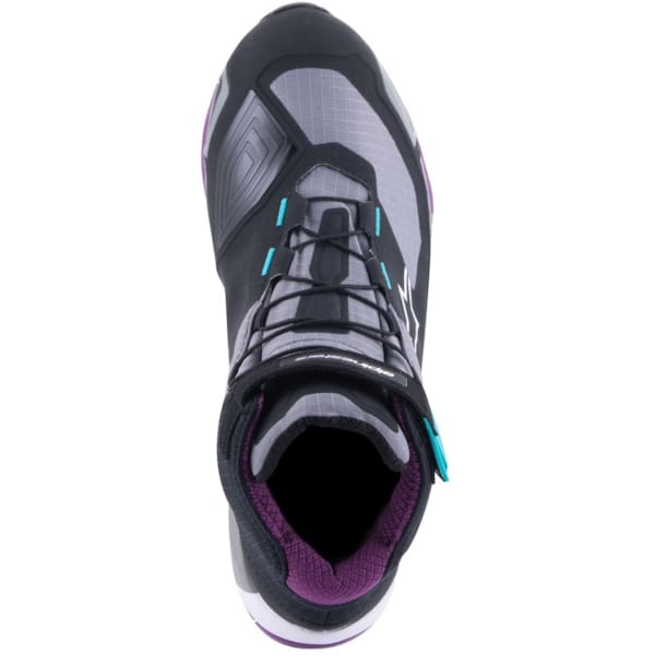 De CR-X Women's Drystar is een visueel sportieve, strakke, enkelhoge motorschoen. Vintage Alpinestars, met een hedendaagse stijl en vooral een opvallende focus op comfort. Comfort kent natuurlijk verschillende uitingsvormen: droge voeten, vlot schakelen, een goed aansluitend gevoel, een verende tred … Maar, wat als je alle hier opgenoemde zaken nu eens samen kon krijgen?