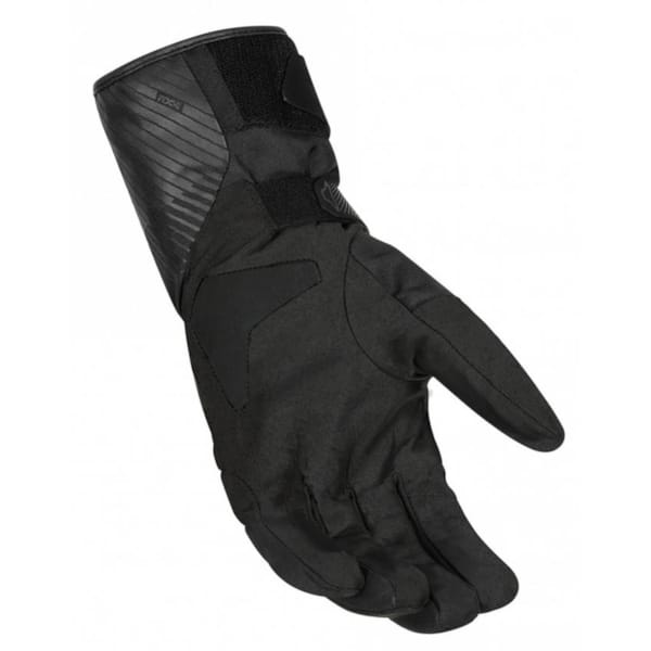 Een geïntegreerde TPU-knokkelbeschermer op de handrug biedt extra bescherming, net zoals de uitgewerkte versterkingen op de handpalm, duim en buitenzijde van de pink. De velcrosluiting – onder de duim in een hoek van 30° voor meer bewegingsvrijheid – zorgt ervoor dat de motorhandschoen goed op zijn plaats blijft. Op de pols bevindt zich een tweede velcrosluiting die toelaat de manchet van de motorhandschoenen aan te passen voor meer comfort boven of onder de jas.