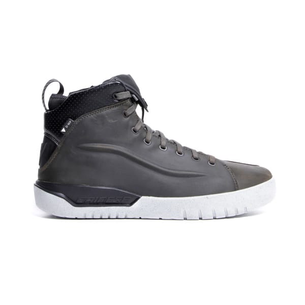 Het volnerfleder aan de buitenzijde is slijtvast en voldoende stevig om vertrouwen in te boezemen als je aan een stoplicht je voeten op de grond plaatst. Als dat per ongeluk net in een plas is, zorgt het geïntegreerde D-WP-interieur voor de waterdichtheid. Het spreekt voor zich dat enkelhoge, waterdichte schoenen met veters geen wonderen kunnen verrichten.