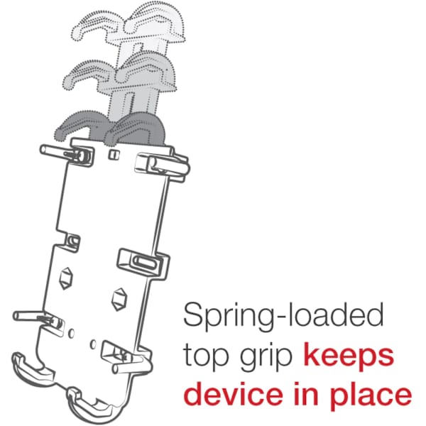 De naam verraadt het: deze XL-smartphonehouder van RAM® is een uit de kluiten gewassen versie die vooral grote toestellen netjes op hun plek houdt. Die plek, dat is in de cockpit of op het stuur van de motorfiets. De Quick-Grip™ verwijst naar het rechttoe-rechtaan-mechanisme met krachtige veer om dat allemaal zeker en veilig te laten gebeuren.