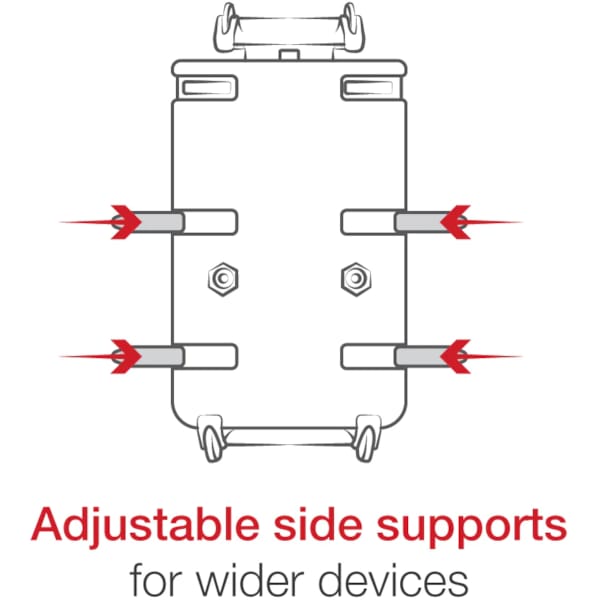 De enige voorwaarde om hier lang en veel van te genieten, is dat je de uiterste reikwijdte van de houder niet overschrijdt. De geveerde afstand bedraagt minimaal 14,61 centimeter en maximaal 18,42 centimeter. De breedte is verstelbaar tussen 6,67 en 9,21 centimeter. De diepte van het toestel dat je wil bevestigen mag niet meer dan 1,83 cm zijn.