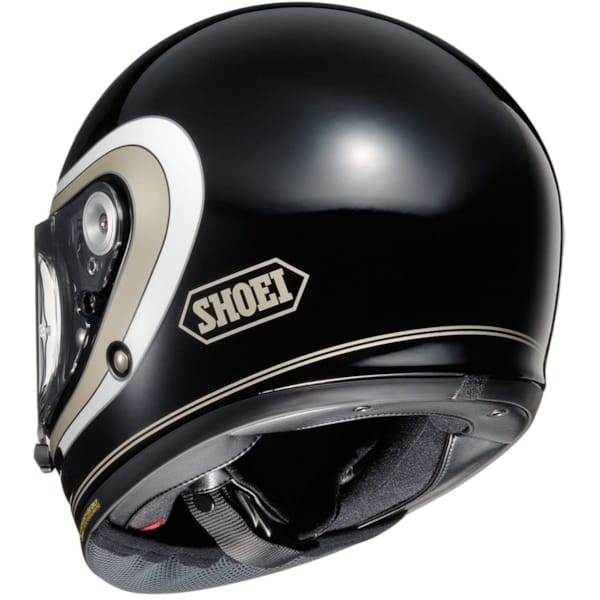 ‘Neo-classic’ noemt SHOEI de serie. Daar valt iets voor te zeggen. Er is duidelijk heimwee naar de integraalhelmen uit de jaren 1950 en 1960. Zelfs de Dunlop-broers droegen in de jaren 1980 een soortgelijk model: compact, met een rechtlijnig, dun kinstuk. Niet te veel extra’s. Functioneel en goed. Nieuw-klassiek dus. Met vooral een zeer veilige invulling van het woordje ‘nieuw’.