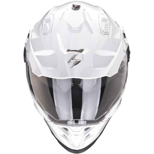 Het algemene voorkomen van de Scorpion ADF-9000 Air is zodanig niet-algemeen dat er eigenlijk geen twijfel over kan bestaan: deze motorhelm is er eentje voor on- en offroadgebruik. Door de zonneklep wel of niet te monteren, speel je met de aerodynamica, die sowieso op niveau is. Offroad zal eventueel ook het transparante vizier even rust krijgen, en ook dat is geen enkel probleem: de hele Scorpion ADF-9000 Air is quasi-moduleerbaar aan te passen. Je haalt er het transparante vizier net zo makkelijk af als je er een courante crossbril voor in de plaats past. In alle omstandigheden beschik je dankzij de brede vizieropening over een breed perifeer zicht en hou je de omgeving perfect in het oog.
