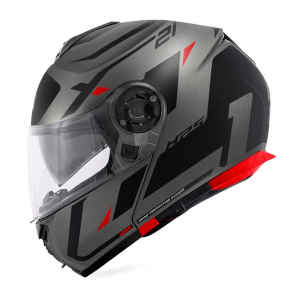 Een krasbestendig, transparant vizier kan snel gewisseld worden door middel van een quick release systeem (twee lusjes net onder het scharnierpunt). De helm is bovendien uitgerust met een getint zonnevizier. Het zonnevizier wordt bediend door middel van een schuifsysteem links opzij van de helmschaal. De bediening is ook met handschoenen perfect mogelijk. Dat geldt ook voor de hendel op het kinstuk, waarna je dat vervolgens probleemloos omhoog klapt. De plaatsing van een Pinlock is voorzien en de pinlock-lens wordt meteen meegeleverd.