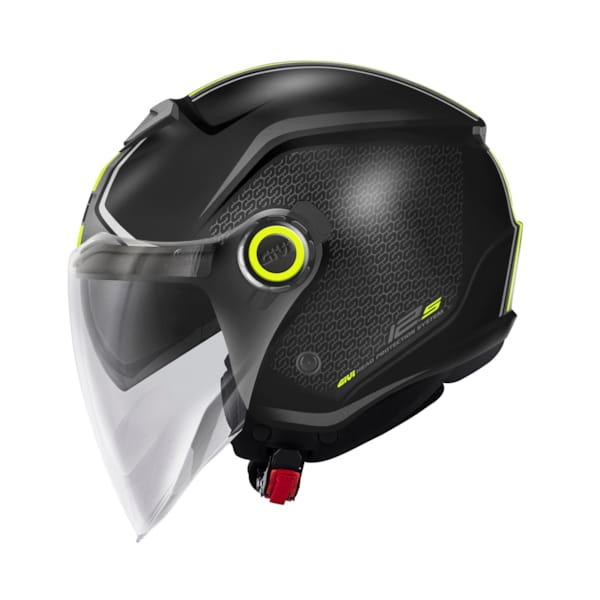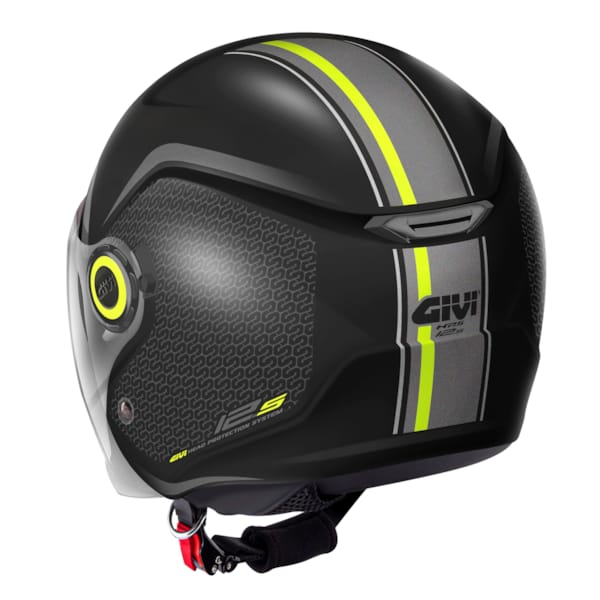 Onderaan sluit je de GIVI 12.5 jethelm met een micrometrische sluiting netjes af.