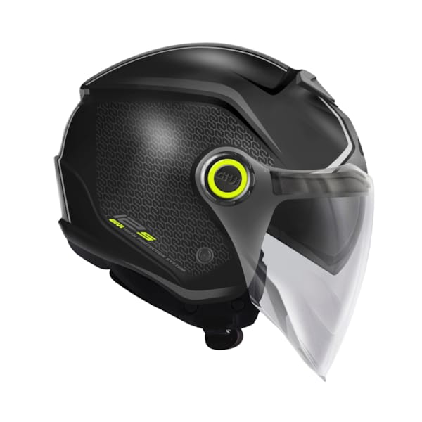 De 12.5 is een echte, hedendaagse jethelm. Met een dubbele thermoplastic-helmschaal, een geïntegreerd zonnevizier en een transparant vizier is er bovendien best wat pak aan.