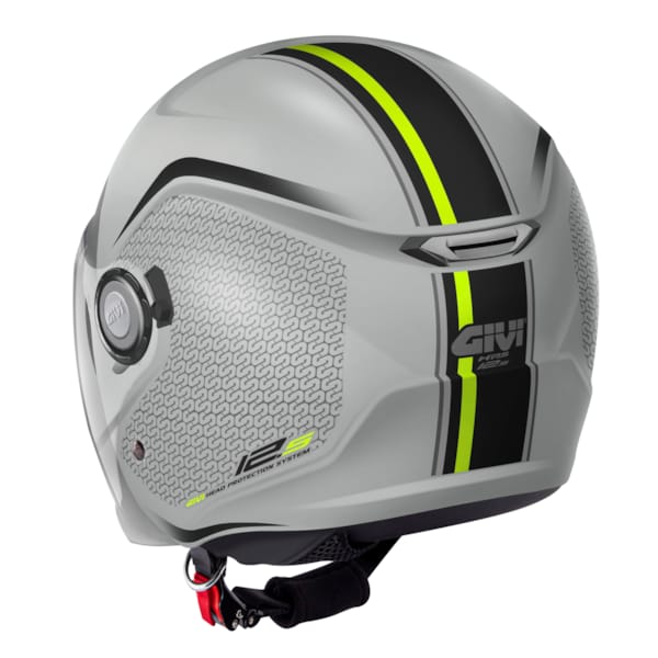 Onderaan sluit je de GIVI 12.5 jethelm met een micrometrische sluiting netjes af.