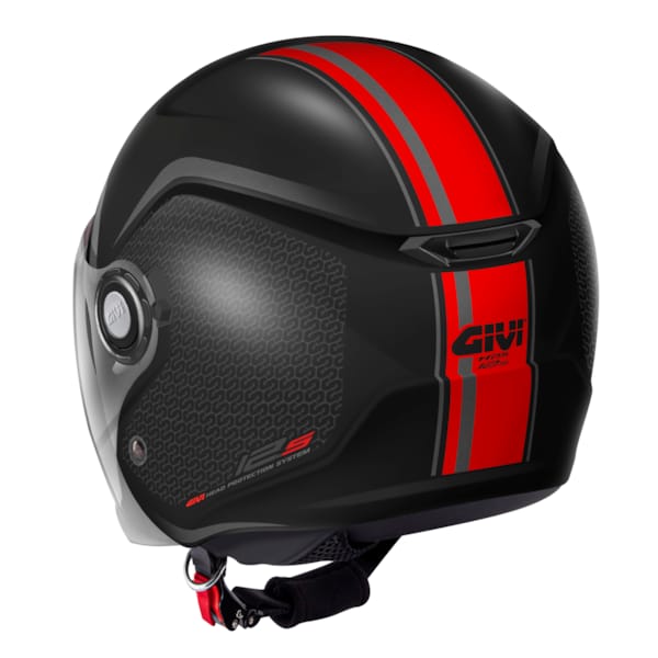 Onderaan sluit je de GIVI 12.5 jethelm met een micrometrische sluiting netjes af.