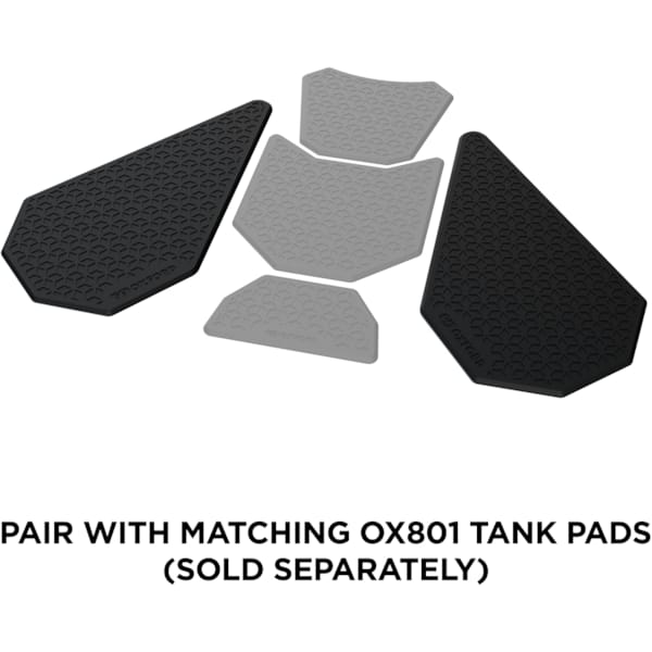 Ondertussen is gebleken dat je met knieën en benen wel degelijk de motor in de bocht ‘legt’. Meer dan met je handen. En al zeker wanneer je – we dromen even hardop – op de voetsteunen je avontuurlijke motorfiets door de Canadese wildernis stuurt. Oxford ontwikkelde deze Tank Grips Gripper met die gedachte in het achterhoofd. Stabiliteit, controle en vertrouwen ontstaan daar waar je deze Tank Grips kleeft. Wie heen en weer zit te schuiven op een zadel, kan nooit een bocht insturen zoals het hoort.