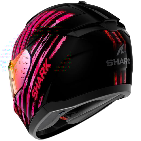 De met Lexan™ geïnjecteerde helmschaal in polycarbonaat komt in twee formaten. Die bevatten netjes verdeeld de verschillende helmmaten. Onder de harde buitenschaal steekt Shark een stevige EPS-padding en op de weegschaal levert dat getallen op die rond of net onder 1500 gram dansen. Veel? Mja … de nieuwe ECE 22.06-keuring lijkt het gewicht van de motorhelmen een beetje omhoog te duwen. Het doet niks af van de compacte, aerodynamische vorm van de Ridill 2, die zelfs een geïntegreerd zonnevizier aan boord heeft.