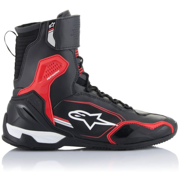 Extra bescherming komt van de dubbel-geïnjecteerde enkelschijven, laterale TPR-panelen op de buitenste enkel, een versterkte TPU-hielkap en een TPR-gelaagde voorzijde. Veel technische termen voor een technisch-opgebouwde motorschoen die dicht aanleunt bij het betere circuitwerk van Alpinestars. Wacht, we zijn er nog niet: de zool is voorzien van de Alpinestars’ TPF-tussenzool die bestaat uit verschillende lagen om te voorkomen dat de voet in de verkeerde richting buigt of draait, terwijl tegelijkertijd zacht PU-schuim, een EVA-hielkussen en een uitneembare en ademende OrthoLite-binnenzool® deel uitmaken van de constructie.