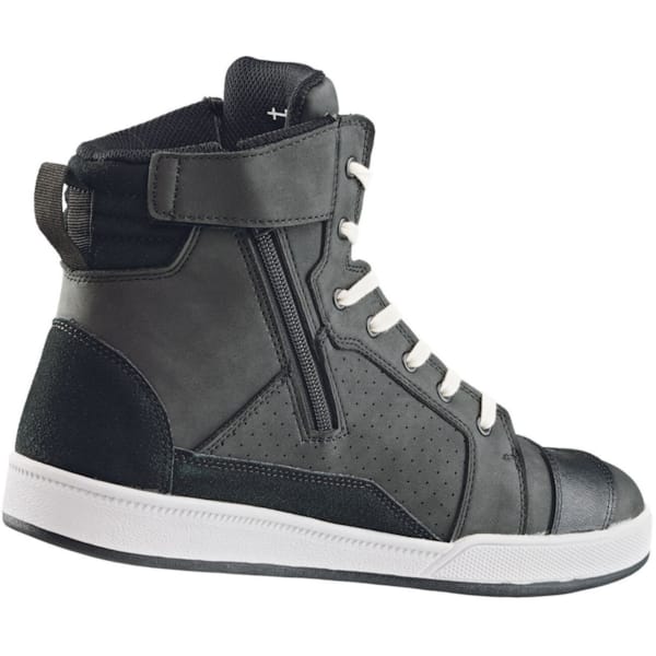 Verder hebben ze alles wat je daarvan mag verwachten: de buitenzijde is een combinatie van amara, microvezel en synthetisch leer. Stijlvol zou de samenvatting kunnen zijn. Comfortabel mag ook, want de zachte polyestervoering en de zijwaartse rits laten je voet probleemloos op de juiste plaats glijden. Het maakt van de veters meteen een visueel ding, en we vinden dat op de motorfiets niet erg.