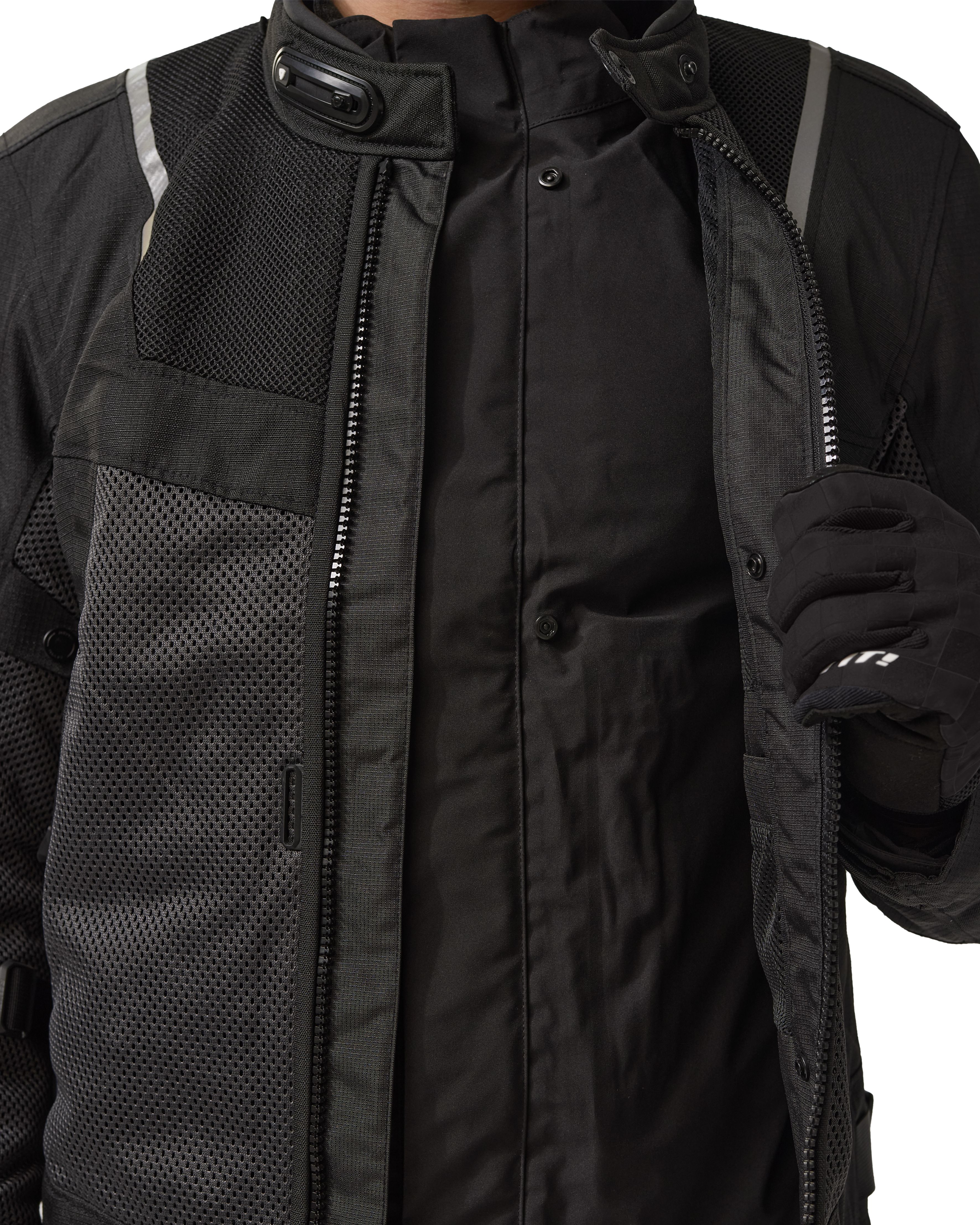 Design, materiaal en allround veiligheid kregen al de nodige updates. De Tornado 4 H2O is vooral het resultaat van een andere kijk op de zaak, en dat resulteert onder andere in het loskoppelen van de voering en het waterdichte membraan. Van elkaar, en van de buitenzijde, in alle denkbare opstellingen en volgordes. Zo ontstaat een 3-in-1 die als extra troef heeft dat je over de optie beschikt om het waterdichte Hydratex 3L-membraan zowel boven als onder de buitenlaag van deze motorjas te dragen, met of zonder de thermovoering. En die laatste kan je ook zonder het membraan aan de buitenzijde bevestigen. Het is een nieuwe, recente aanpak die voor- en tegenstanders kent, en die door REV’IT! eerder ook in de Offtrack toegepast is.