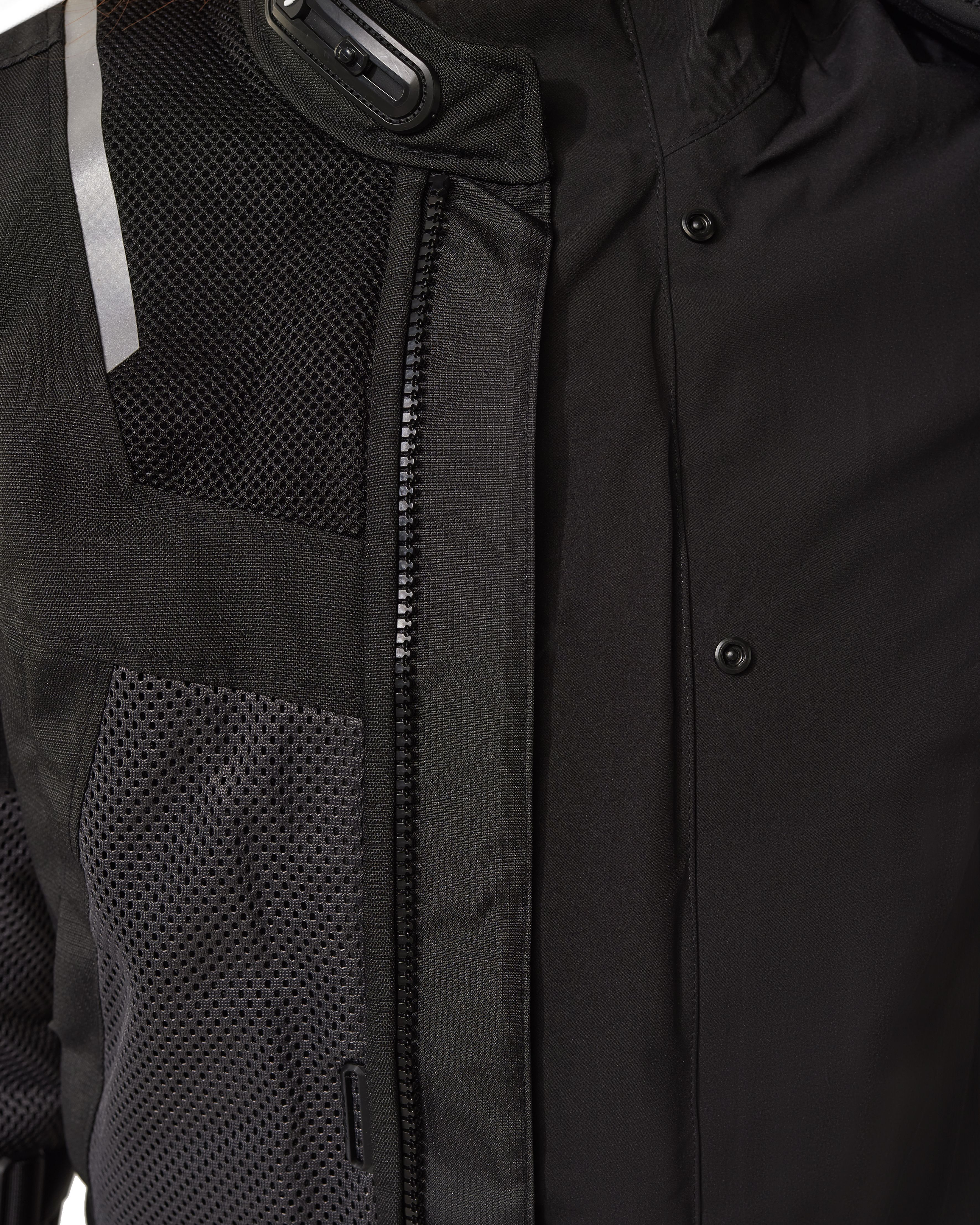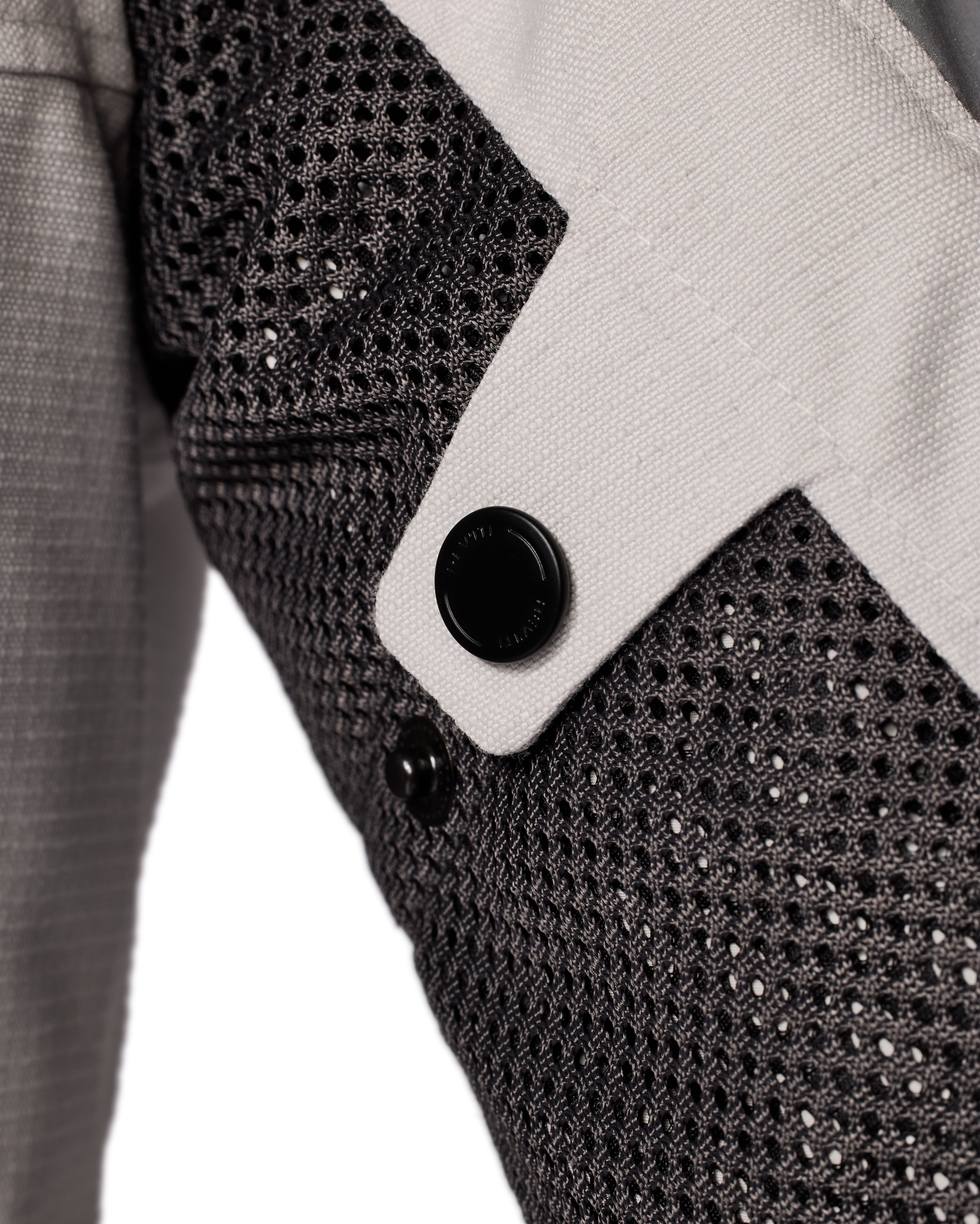 Een en ander is een logisch gevolg van de update(s) die membranen de laatste tijd kregen. Concreet: het membraan werd nog beter ademend en stretchend. Minder kunstmatig ook. Beter, comfortabeler en aangenamer. Tot je het plots ook boven de motorjas kon dragen, als volwaardige buitenste laag. En – we zijn er bijna – waar dat in de initiële Offtrack nog wat kinderziektes vertoonde (kleuren en lengtes die niet altijd matchen) heeft REV’IT! er hier voor gekozen om alles in één kleur te produceren, waardoor een uniform en altijd herkenbaar geheel ontstaat. Het enige wat de tegenstanders nog als argument overhouden, is dat het membraan onderaan uit de motorjas tevoorschijn komt als je de oude, vertrouwde opstelling (buitenlaag – membraan – voering) aanhoudt. Tja, het is dat of een natte rand onderaan …