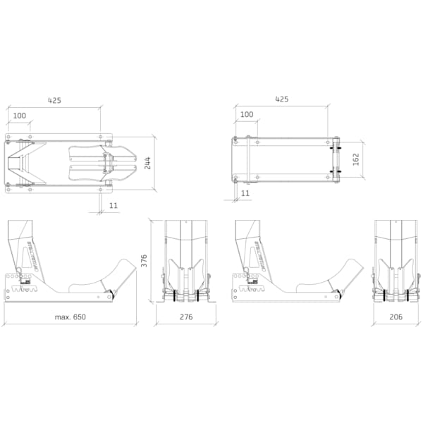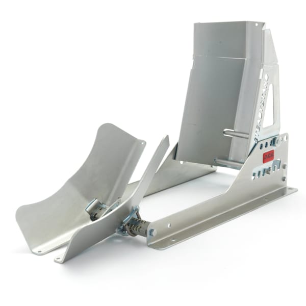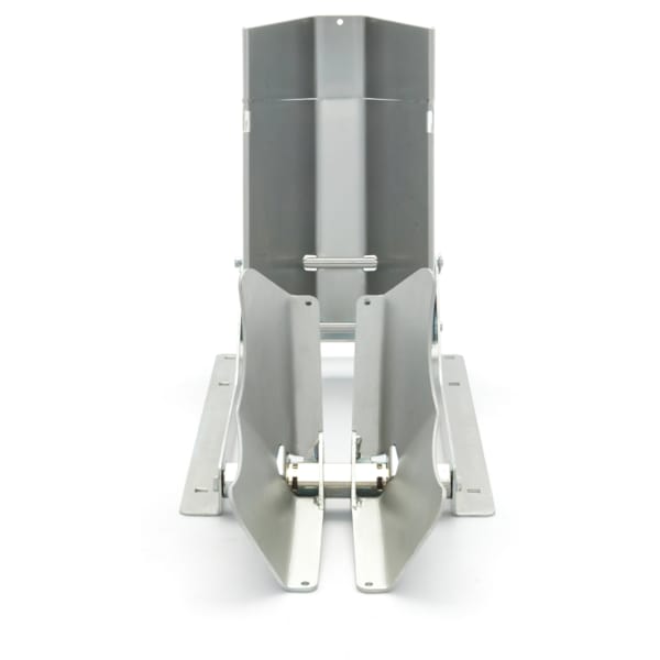 Dit model is specifiek ontwikkeld om vast te maken in de bodem van een aanhangwagen of bestelbus. De wielklem kan op twee verschillende manieren geassembleerd worden: met de bevestigingspunten naar buiten voor een breder grondvlak, of met de bevestigingspunten naar binnen voor een smaller grondvlak.