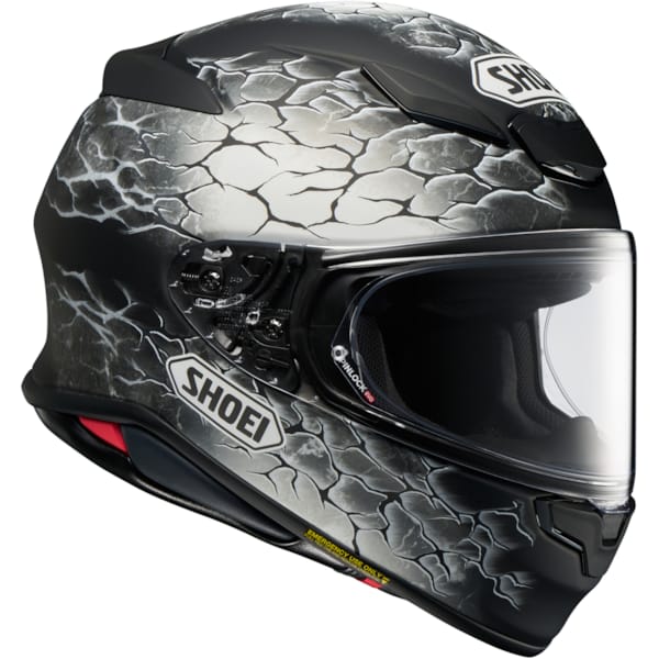 De aangepaste helmschaal levert meteen ook een nieuw vizier op. Het CWR-F2-vizier is – gelukkig – transparant en groter dan het CWR-1-vizier op de originele Shoei NXR. Windegeleiders creëren minder turbulentie en de standaard Pinlock®-lens verstoort je gezichtsveld niet. De Shoei NXR 2 is net als zijn voorganger een motorhelm zonder geïntegreerd zonnevizier. Dat is een keuze die veel voordelen biedt, maar kiezen blijft altijd een beetje verliezen. Oplossingen bestaan vanzelfsprekend in de vorm van – bijvoorbeeld – een fotochromatisch vizier of een getinte variant. Aan het wisselen tussen vizieren kan het niet liggen: heel veel sneller en vlotter lukt amper.