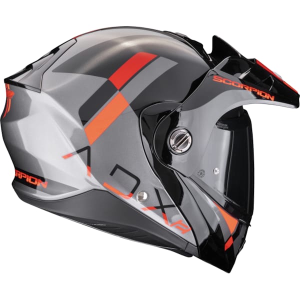 De schuiver van de topventilatie kan perfect met of zonder motorhandschoenen bediend worden. Achteraan verlaat rijwind net boven de spoiler de helmschaal opnieuw. De kinventilatie kan open- of dichtgezet worden. De ‘geroosterde’ details sluiten bewust aan bij de adventure-allures van de ADX-2 en doen denken aan crosshelmen. Het transparante vizier is klaar om een Pinlock®-lens met Maxvision te bevestigen en je vindt die ook gewoon in de doos. Met de term ‘Speedview’ kijkt SCORPION in de richting van een geïntegreerd zonnevizier. De schuiver vind je links onderaan.