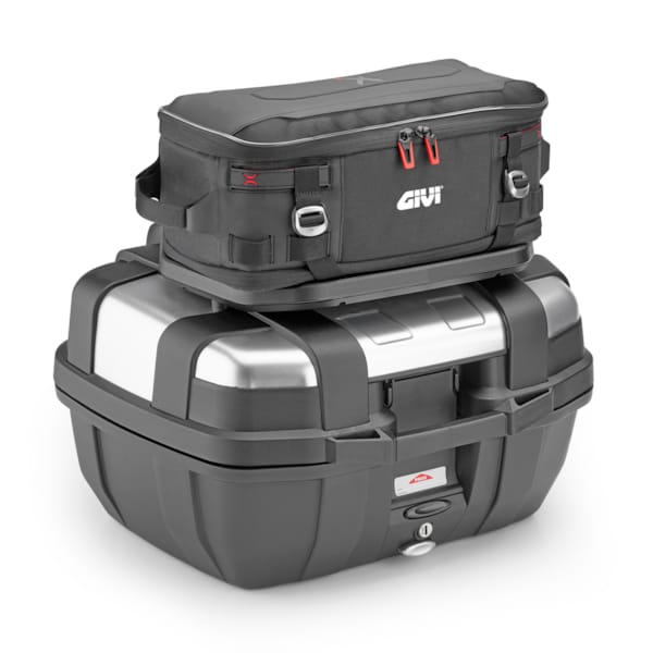 De GIVI Cargotas XL01B van (minimum) 15 liter maakt deel uit van de X-line die GIVI aanbiedt. Opvallend hier is de rechthoekige vorm én de optie om deze cargotas zowel op zichzelf als in combinatie met – bijvoorbeeld – een koffer te gebruiken.
