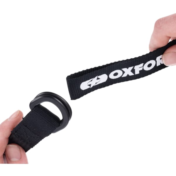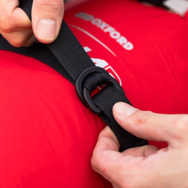 De Atlas Straps met D-ringen zijn veiliger dan een bungee-elastiek, zegt Oxford. We geloven het zodra we het management hiermee een bungeesprong zien doen. Tot dan houden we het erop dat Oxford’s Atlas Straps een veelzijdige, verstelbare, sterke manier zijn om iets vast te maken op de motorfiets.