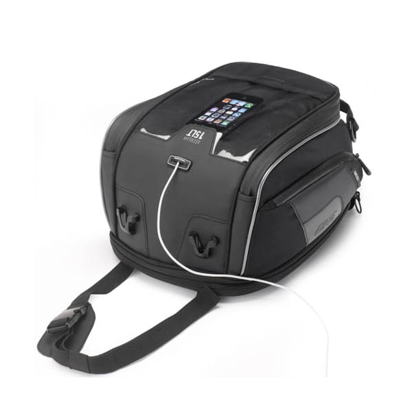 De Givi Xstream is gemaakt uit stevig 600D polyester met PVC-verstevigingen. Een aparte, fluorescerende regenhoes (met doorkijkstuk bovenaan) wordt meegeleverd. De aanwezigheid van een handvat laat toe om de tanktas probleemloos mee te nemen bij een tussenstop. Een meegeleverde schouderriem verandert de tas in een oogwenk in een rugzak/schoudertas. Reflecterende details vergroten de zichtbaarheid ’s avonds en ‘s nachts. De afmetingen van deze tanktas zijn 27 cm x 35 cm x 18 cm. De hoogte is door middel van een rits onderaan aan te passen tot 21 cm. De maximale inhoud van de tanktas bedraagt dan 15 liter. De afmetingen van de transparante kaartlezer zijn 20 x 24,7 cm.