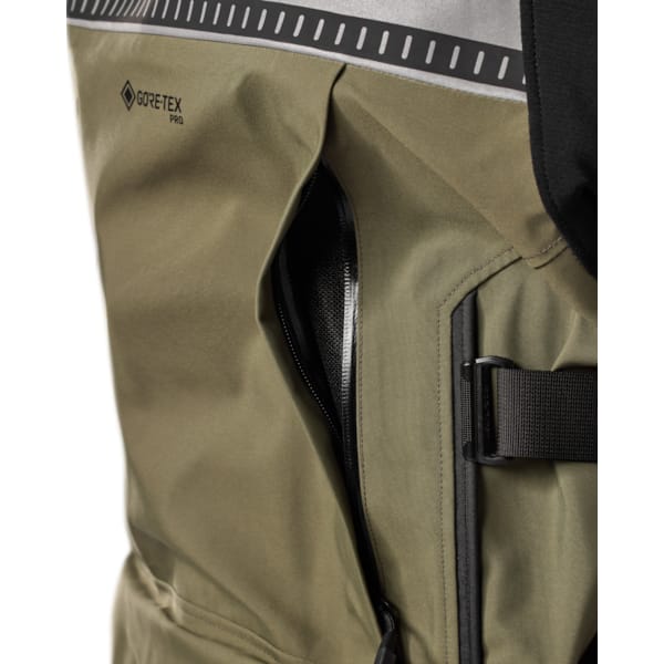 Aangevuld met SEEFLEX™ level 2 CE-protectoren op de ellebogen en de schouders, en standaard een SEESOFT CE-level 2 rugprotector, lijkt de Dominator 3 GTX – puur op basis van het indrukwekkende lijstje – meer op een harnas dan een jas. Je kan en mag er naar eigen zin en noodzaak nog een SEESOFT™-borstprotector aan toevoegen.
