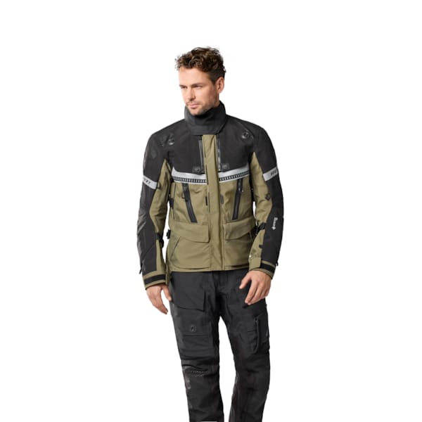 De hele constructie ademt persoonlijkheid en individuele aanpasbaarheid. Op elk vlak is bovendien voor topkwaliteit gekozen. Het gelamineerde GORE-TEX® is gebleven en maakt ook deze motorjas 100% waterdicht. Gelamineerde GORE TEX® betekent dat een waterdicht GORE TEX® membraan rechtstreeks op de buitenstof gehecht (gelamineerd) wordt. Dat zorgt ervoor dat water geen weg naar binnen vindt, de jas niet zwaar gaat wegen en uitermate snel weer droogt. Dit benadert de perfectie als het over bescherming tegen regen gaat.
