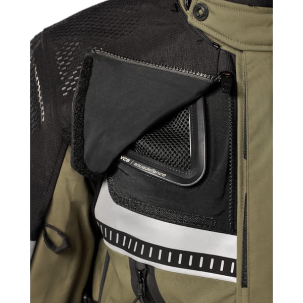Het innovatieve VCS | aquadefence systeem met FidLock® magnetische sluiting, zorgt voor uitstekende ventilatie wanneer het geopend is. Tijdens het rijden sluit je het gemakkelijk met één hand waterdicht af. De ‘aquadefence’ bestaat uit een ‘gootje’ rond het ventilatiegat, dat voorkomt dat vocht toch een weg naar binnen zou vinden. Het verbeterde VCS|Zipper-systeem voorziet extra (rechtstreekse) ventilatieopeningen. De ventilatieritsen op onder- en bovenarm kregen een aangepaste positie om de luchtstroom nog beter richting het lichaam te dirigeren.
