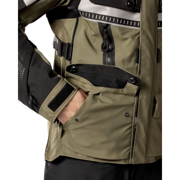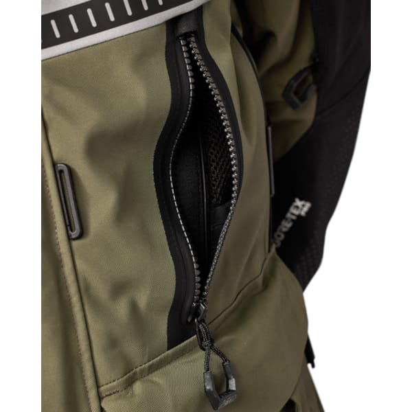 Het is natuurlijk geen evidentie om ‘de meest functionele motorjas ooit’ nog veel beter te maken. Toch lijken ze erin geslaagd om hier en daar elementen toe te voegen die alweer een niveau hoger schakelen. Het waren wereldreizigers en offroad-veteranen die met hun feedback aan de basis lagen van de originele Dominator GTX en dus is eigenlijk aan alles gedacht. Ook aan het feit dat je bij een motorjas van dit kaliber zelf wil bepalen welke midlayer of thermolaag je gebruikt. Je vindt hier dan ook geen standaard-thermovoering en kiest zelf wat de noodzaak is op elk moment. Men gaat er terecht van uit dat wie voor een Dominator 3 GTX kiest weinig boodschap heeft aan een thermolaag van dertien in een dozijn.