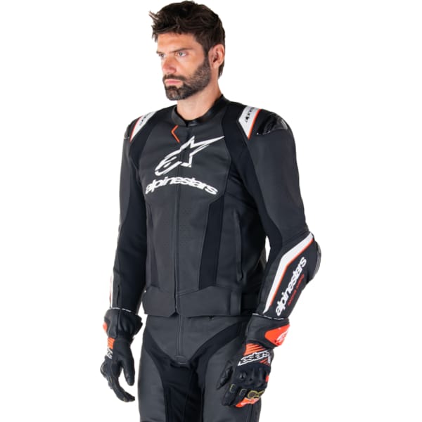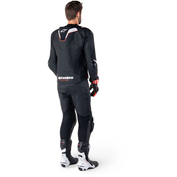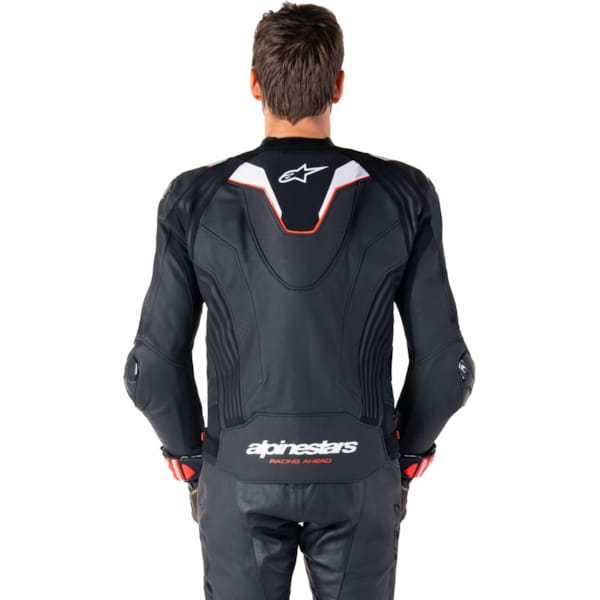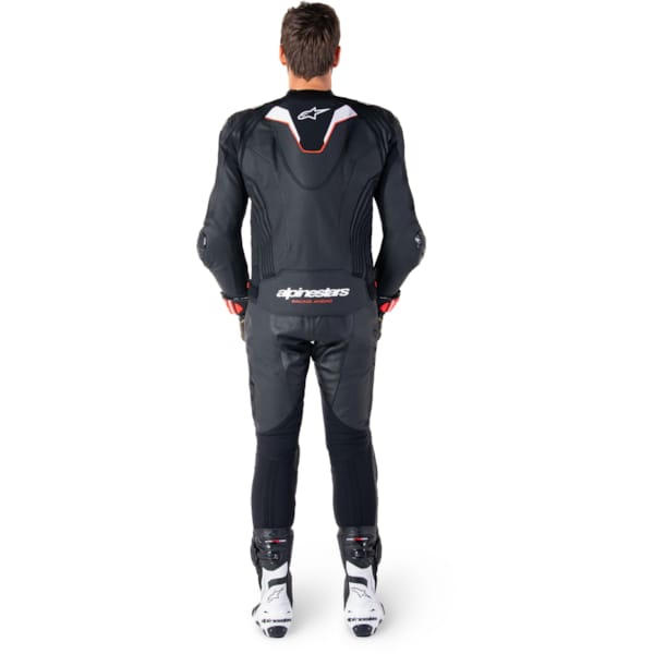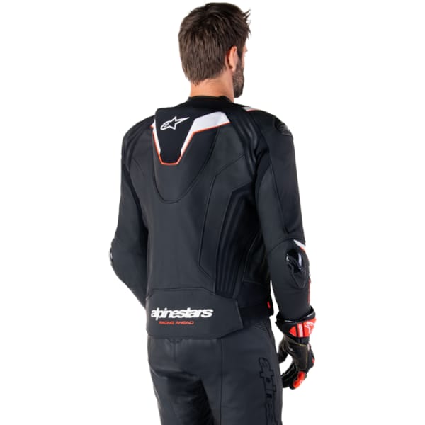 De lederen Missile V3 Ignition-motorjas is een premium motorracejas en rechtstreeks afgeleid van wat in de MotoGP gangbaar is. En geschikt om met Tech-Air®-airbagsystemen gebruikt te worden. Deze motorjas situeert zich zowat net onder een motorracepak, en in deze derde versie kreeg de sportiefste der lederen motorjassen van Alpinestars een aero-hump, en ook de aanwezigheid van HRSF-materiaal is opvallend.