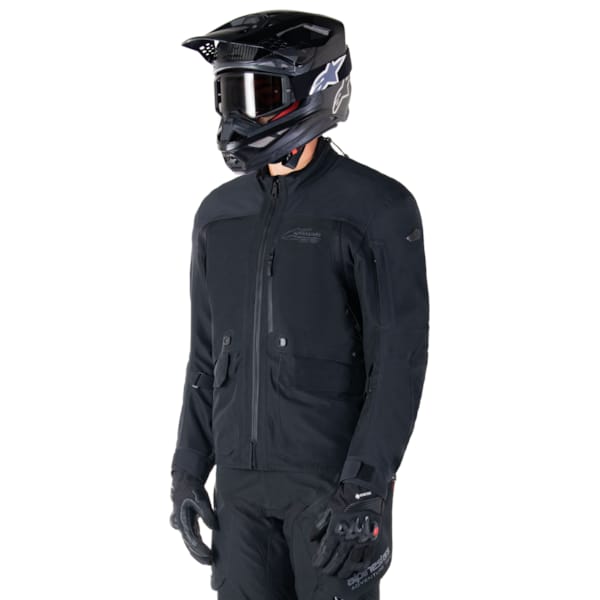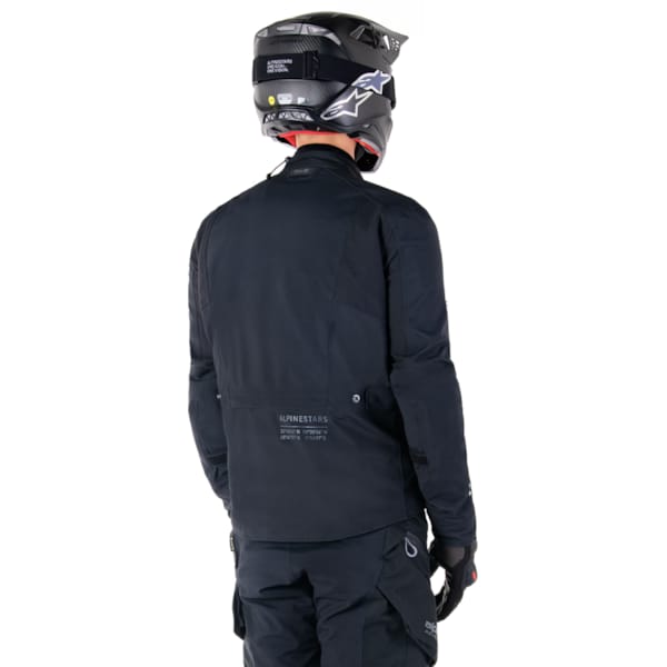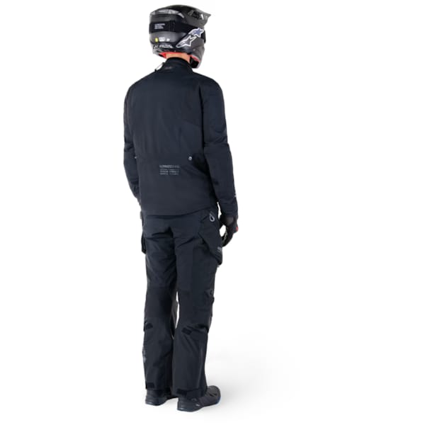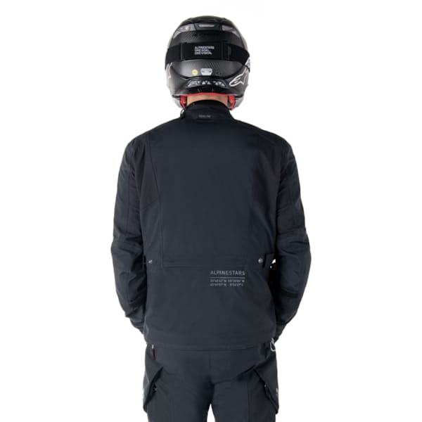 De snit en pasvorm sluiten daarbij aan. Ze weten bij ALPINESTARS wat ze doen. Dit is niet hun eerste motorjas. Kenners kunnen hier een lichte anatomische, ergonomische voorgevormdheid bespeuren. De armen, ellebogen, schouders … je merkt dat ze op weinig weerstand botsen. Dat stelt de vermoeidheid uit en houdt het comfort hoog. Op de flank beschik je over een drukknop om de motorjas enkele centimeters meer of minder te centreren. Ook de mouwen zijn aanpasbaar door middel van velcro. Dat de achterzijde van de ST-7 Prime GTX langer uitvalt dan de voorzijde, is bij avontuurlijke touringmotorjassen als de ST-7 Prime GTX een evidentie.
