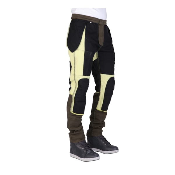 De combi van een buitenzijde in katoen (en elasteen, daarover straks meer) en een interne laag DuPont™KEVLAR is en meest traditionele wijze om een motorbroek te construeren. In het verleden leidde dat bij veelverwachtende zomerrijders tot wat gemopper omdat de temperatuur durfde oplopen, maar veel beter is het natuurlijk als je deze Brandon Cargo gewoon op het juiste ogenblik gebruikt: niet als het 30°C of meer is.