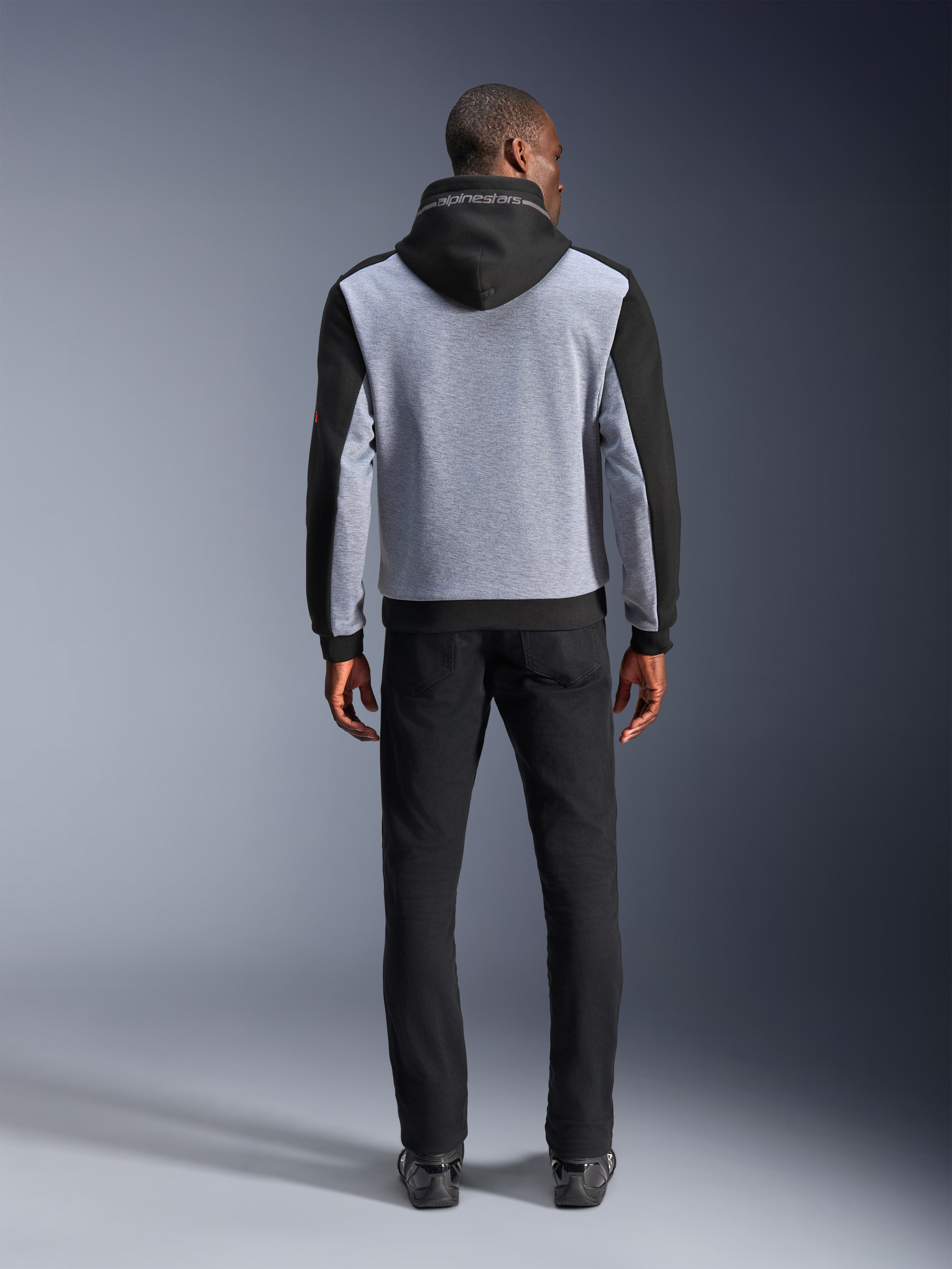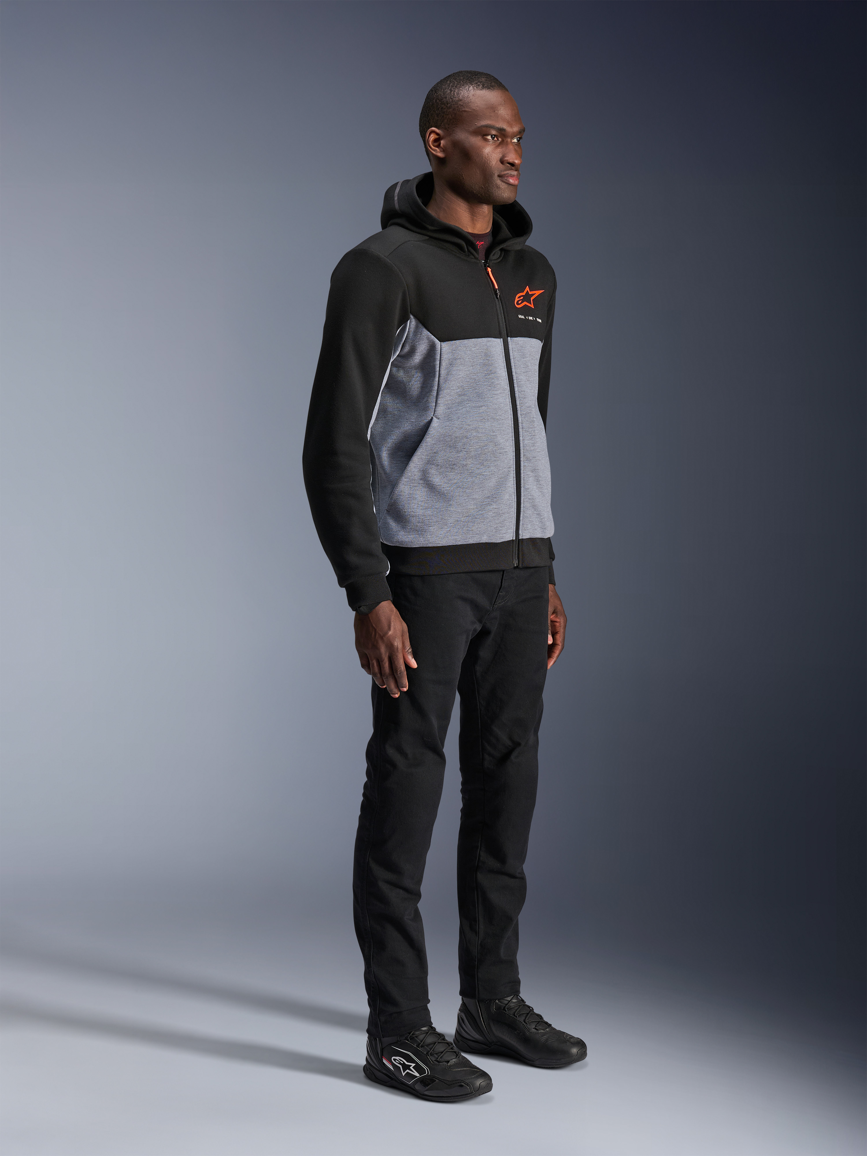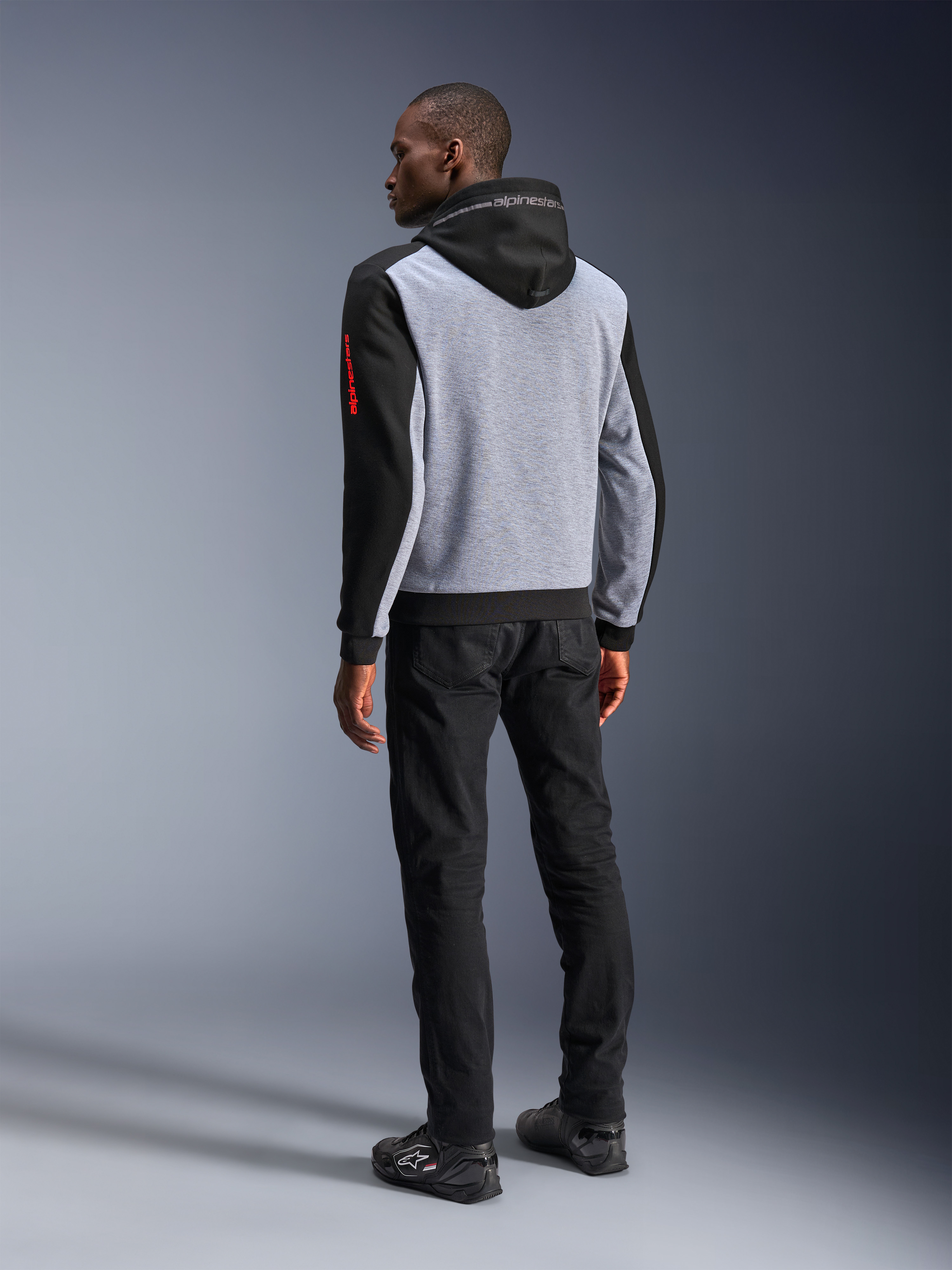 In de Chrome V2 Sport motorhoodie zit verrassend veel – nou ja, het blijft Alpinestars – water- en windwerende technologie verwerkt. De buitenzijde lijkt qua uitzicht wat op softshell maar is dat niet. Tech fleece, zo heet het, en het gaat wel degelijk om een duurzaam, comfortabel en licht textiel, aan de binnenzijde versterkt met aramide voor extra scheur- en slijtvaste eigenschappen.