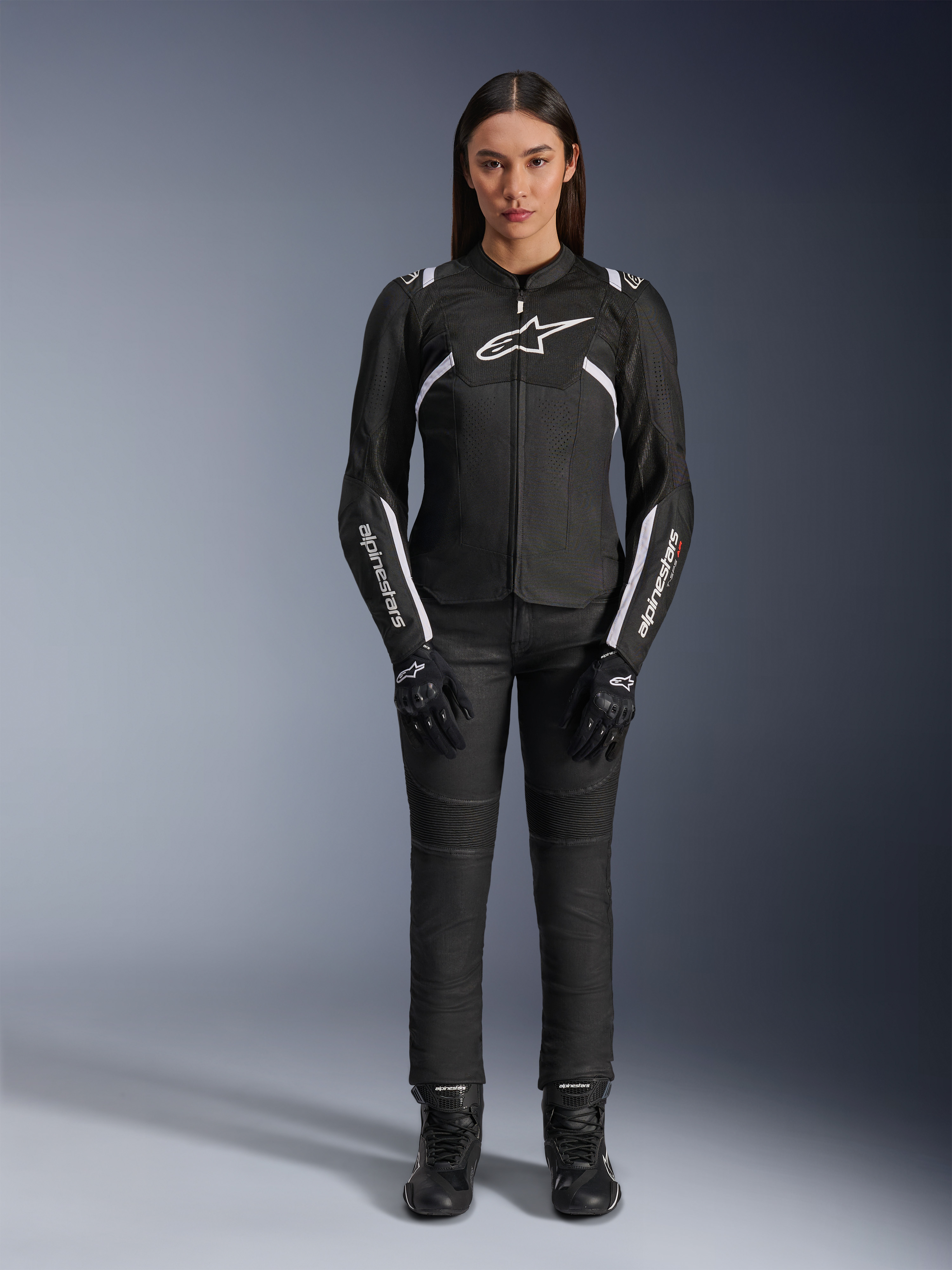 De Alpinestars Stella T-SPS Air V2-doorwaaimotorjas is voorzien van verbindingslussen om eventueel de connectie te maken met de motorjeansbroek.