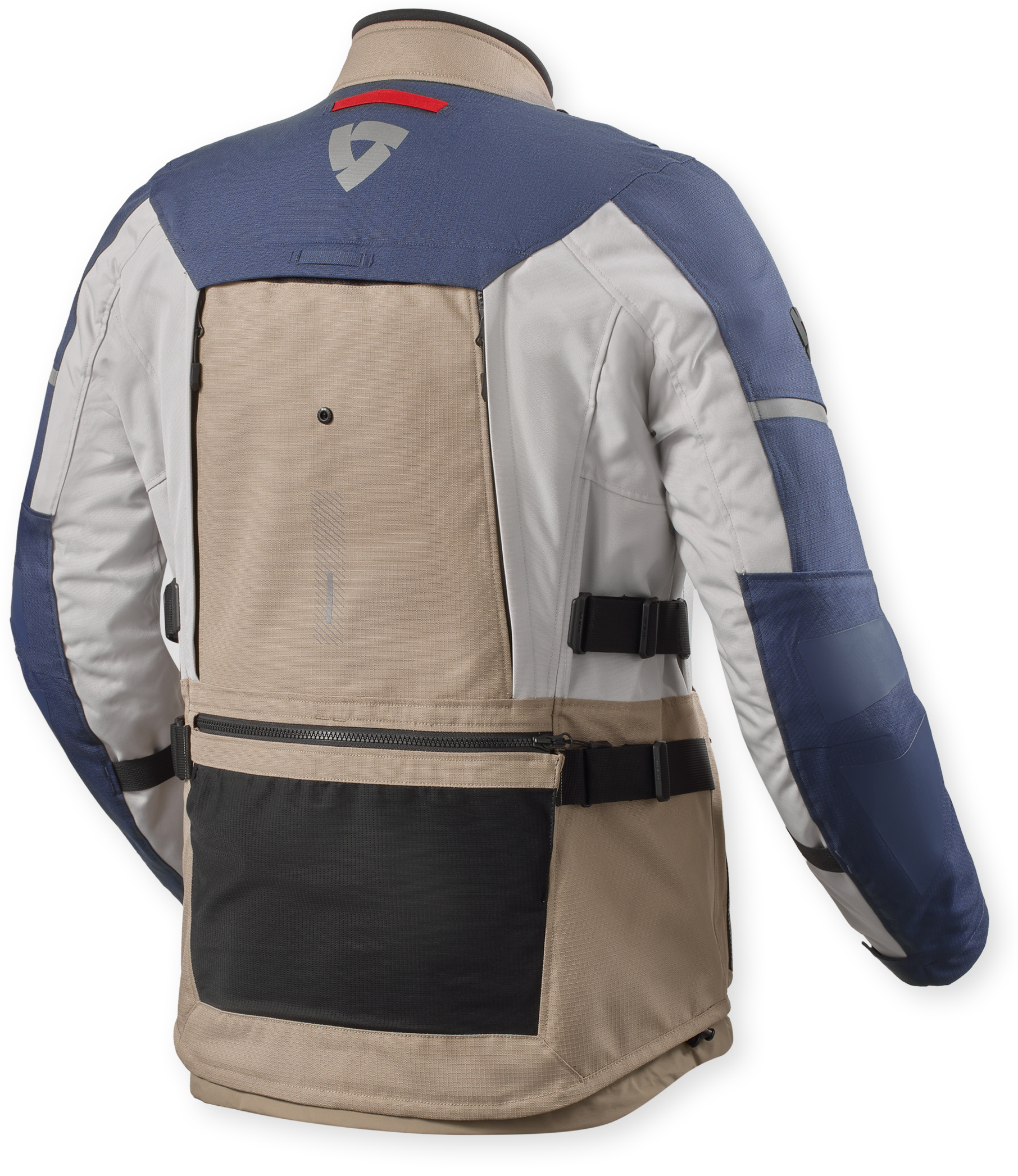 De Sand 5 H2O maakt zijn veelzijdige imago meer dan waar. De Sand 5 H2O mag ondertussen een icoon genoemd worden, en het blijft een van de meest complete motorjassen op de markt. Eén van de langere textieljassen uit de REV’IT!-collectie ook, al blijven de Nederlandse heren en dames fan van een korte, goed aansluitende snit. De achterzijde werd een fractie langer uitgewerkt, om een blote rug op de motor te vermijden.