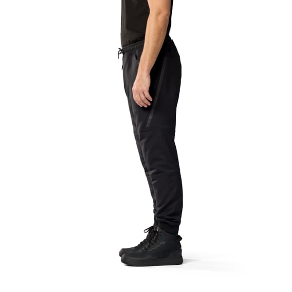 Praktische details zoals het verstelbare trekkoord op de taille, elastische manchetten (of toch het equivalent daarvan, ter hoogte van de enkels) en meerdere opbergzakken maken deze motorbroek bijzonder functioneel. Voor een joggingbroek, maar ook in vergelijking met andere motorbroeken.