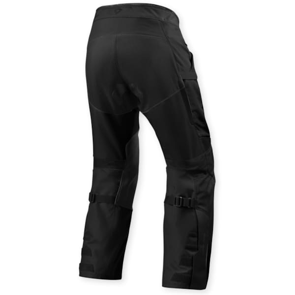 Onderaan openen de broekspijpen door middel van een halflange rits. Velcrostroken – breder en groter dan bij eerdere versies – zorgen voor een perfect aanpasbare pasvorm, boven of in de motorlaars. Om de Sand 5 H2O bovenaan te sluiten gebruikt REV’IT! nu een drukknop, die niet spontaan kan openen onder zijwaartse spanning, en een rits. Verstelmogelijkheden op de taille zijn aanwezig in de vorm van elastische banden en in lengte verstelbare riemen. De ruime, goed af te sluiten zijzakken laten je toe het nodige op te bergen. Net zoals bij de Sand 5 H2O-motorjas ruimden de velcro-afsluitingen hier baan voor een rits.