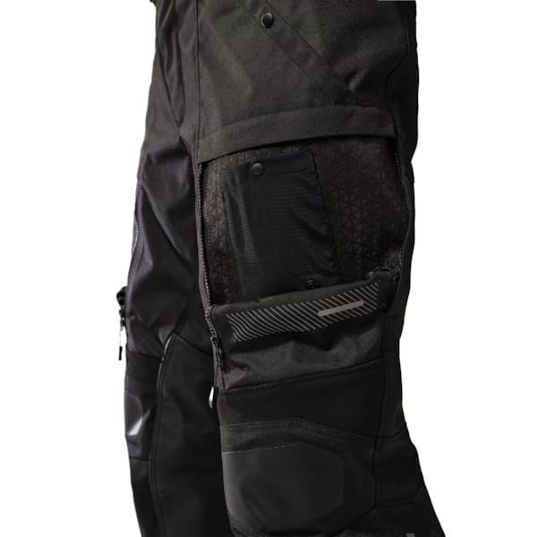 Water- en winddicht dus, slijtvast, ventilerend, met heel wat opbergruimte en gebruiksgemak, die zaken zijn gebleven. Het hydratex|3L-membraan staat garant voor de waterdichte eigenschappen, en kan rekenen op eventuele versterking van een comfortabele thermovoering. De eigenlijke motorbroek blijft een slijtvaste, stevige constructie in polyester. Verwijder je membraan en voering, dan creëer je via ventilatieritsen twee rechtstreekse openingen. Je kan het formaat daarvan zelf halveren, afhankelijk van de behoefte.