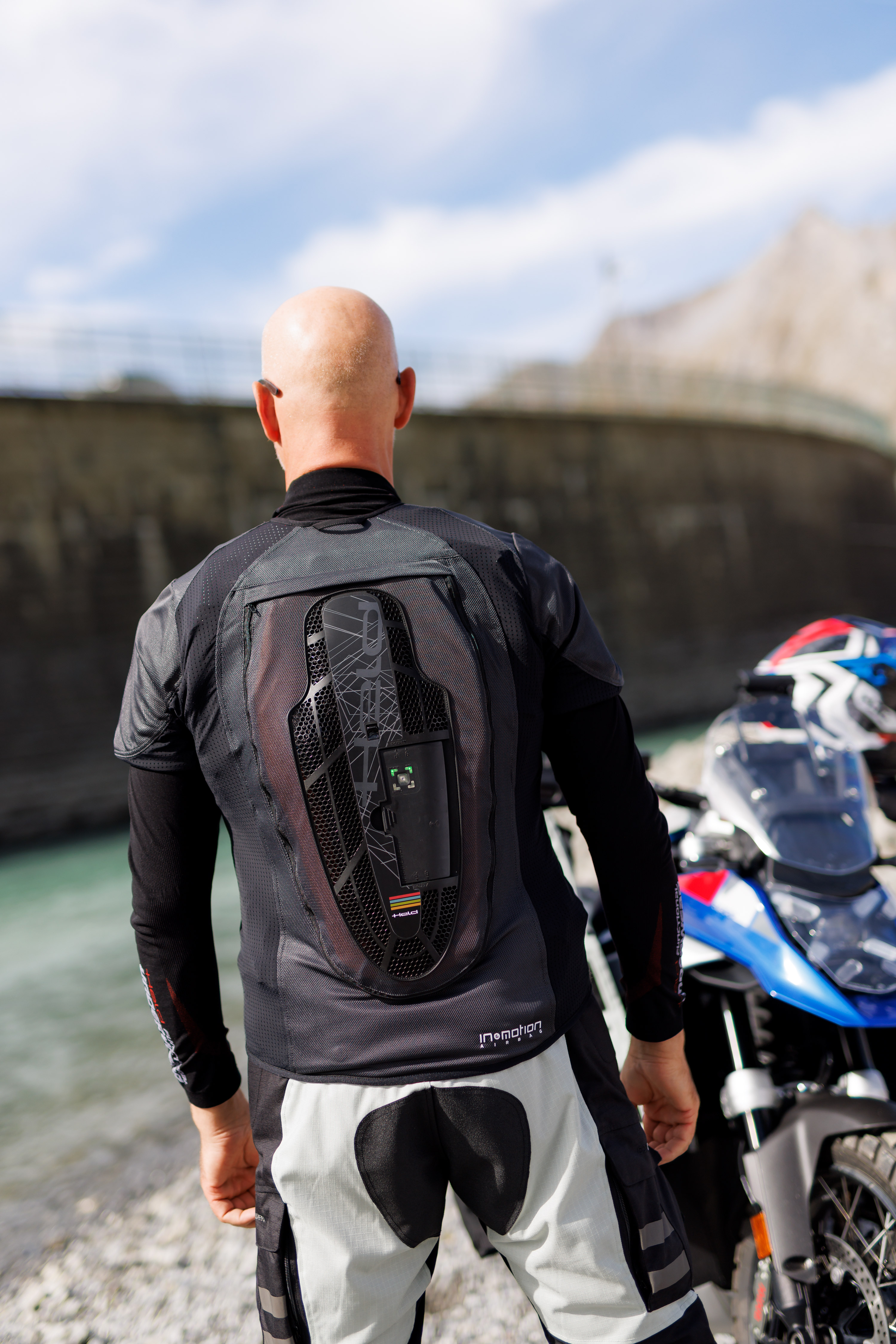 Om de Held eVest-modellen te laten functioneren is de In&box-module van in&motion nodig, die in de achterschelp van het Held eVest wordt geplaatst.
