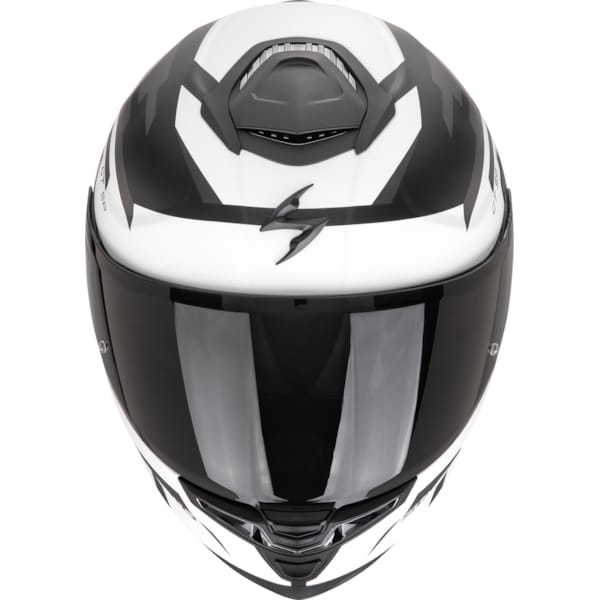 Zo maar even drie helmschaalformaten zijn voorzien om de in totaal zeven maten te bevatten. Scherp en strak dus. Aerodynamisch lijnen mag je sowieso verwachten bij een sportieve integraalhelm als deze, en de Scorpion-elementen mogen er zijn. Licht is hij ook, want de innovatieve ‘pregreg’-schaal – een combinatie van carbon- en composietvezels – voegt wel extra schokabsorptie toe maar geen extra gewicht. Het zet 1500 gram op de weegschaal.