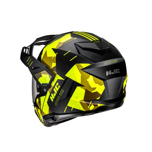 De verwijderbare windafdichting kin is voldoende groot om de switch tussen (vaak nauwer aansluitende) integraalhelm, (ruimer uitgemeten) systeemhelm en zelfs (avontuurlijk en doorgaans vooruitgeschoven) dual-sport al bij al goed te overbruggen en op te vangen. Diezelfde gedachte trekt HJC door in de netjes uitgewerkte nekrand.